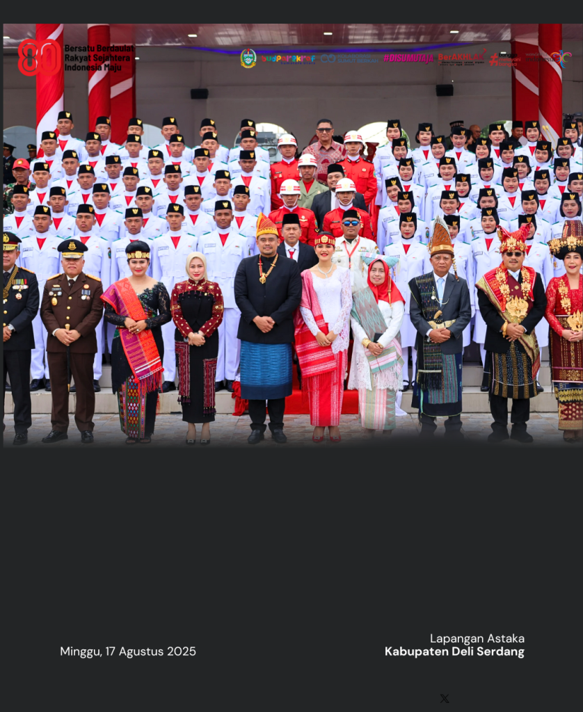 “Upacara Detik-detik Proklamasi Dalam Rangka HUT Republik Indonesia ke-80” Upacara dipimpin langsung oleh Gubernur Sumatera Utara sebagai inspektur upacara, sebuah peran yang menunjukkan wibawa sekaligus penghormatan tertinggi dalam peringatan Hari Kemerdekaan. Dengan penuh khidmat, beliau memimpin jalannya upacara yang berlangsung dengan tertib, rapi, dan penuh makna Upacara Detik-Detik Proklamasi HUT ke-80 Kemerdekaan Republik Indonesia juga
