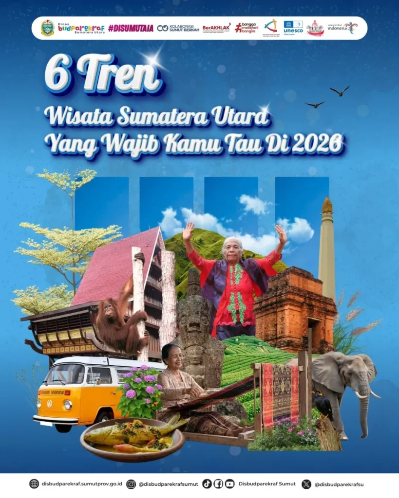 Sudah tahu belum? Ini dia 6 tren wisata Sumatera Utara di 2026 yang wajib kamu tahu! Mulai dari wisata berbasis alam dan budaya lokal hingga pengalaman wisata yang lebih berkelanjutan dan kreatif. Yuk, siapin rencana liburanmu dari sekarang dan rasakan serunya menjelajah Sumut di tahun 2026!