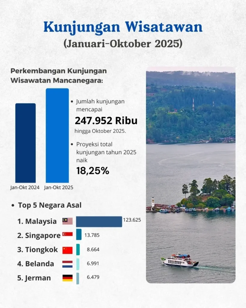 Peningkatan ini mencerminkan semakin kuatnya daya tarik pariwisata Sumatera Utara di mata dunia, didukung oleh kekayaan alam, budaya, serta berbagai upaya kolaboratif dalam promosi dan pengembangan destinasi wisata.