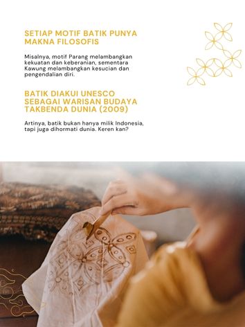 SELAMAT HARI BATIK NASIONALOleh Dini Riwantika / 2 Oktober 2025 Tahukah kamu kalau batik itu lebih dari sekadar kain? Yuk, kenalan dengan keunikan batik yang bikin kagum!