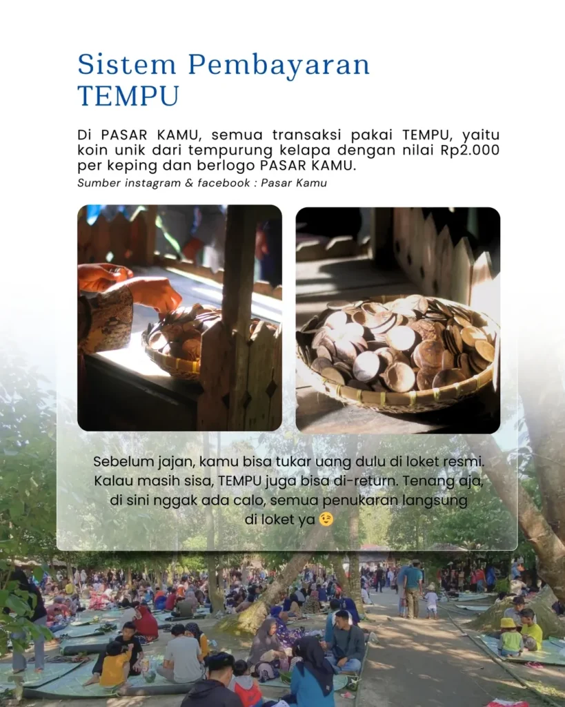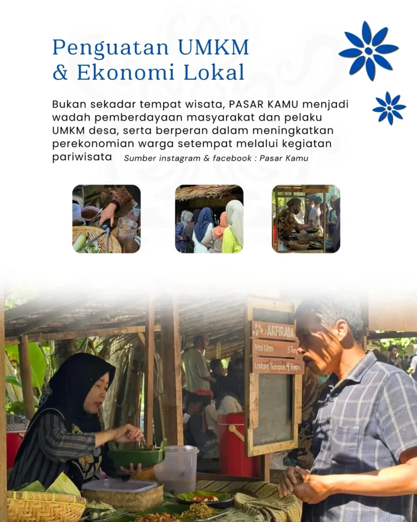 Pasar Kamu menghadirkan suasana alam persawahan yang asri, kuliner sehat berbasis tradisi, serta nuansa kebersamaan yang hangat. Keunikan tersebut menjadikan Pasar Kamu bukan sekadar destinasi wisata, melainkan ruang belajar budaya yang hidup dan bermakna.